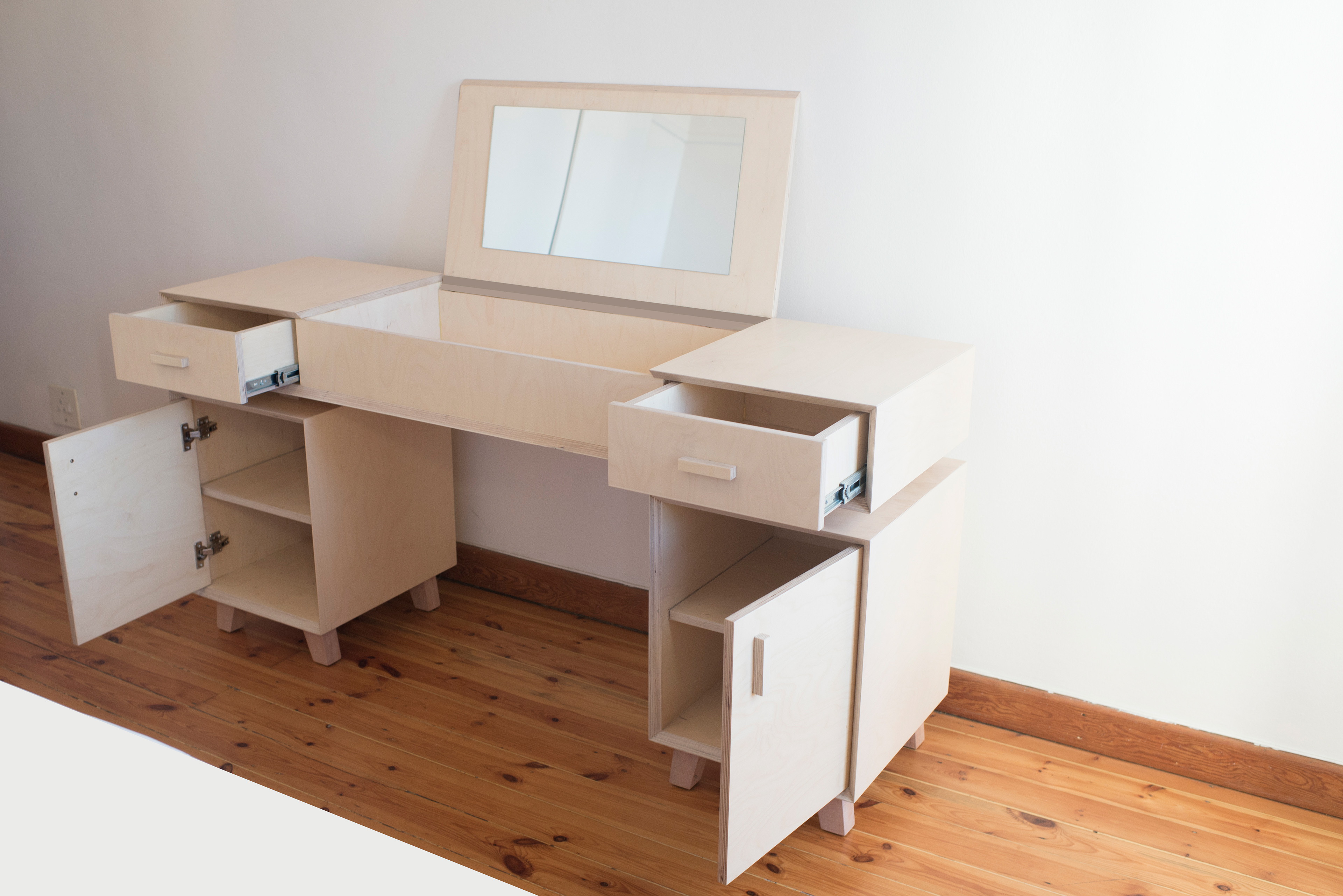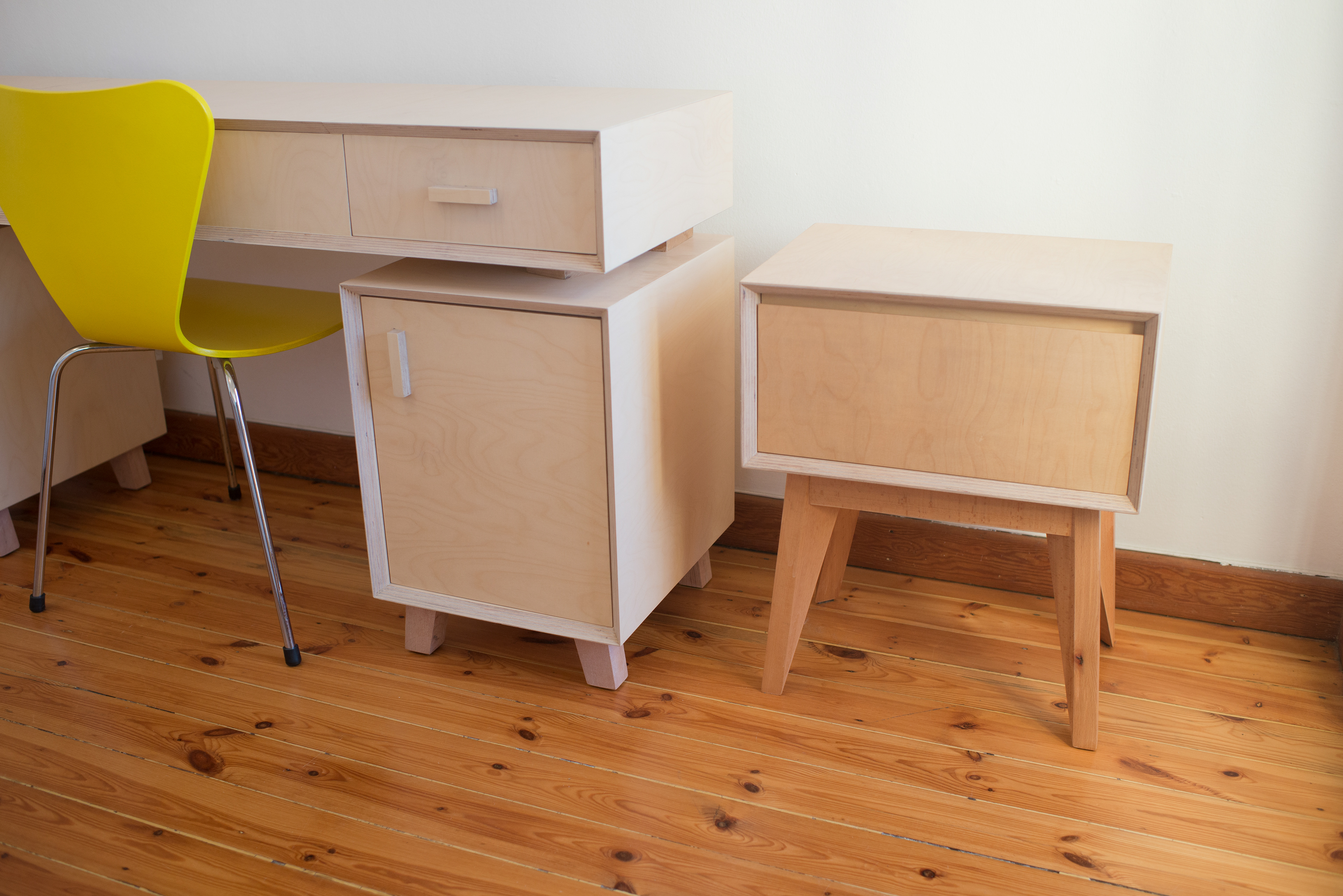 Birch plywood cupboards and side tables