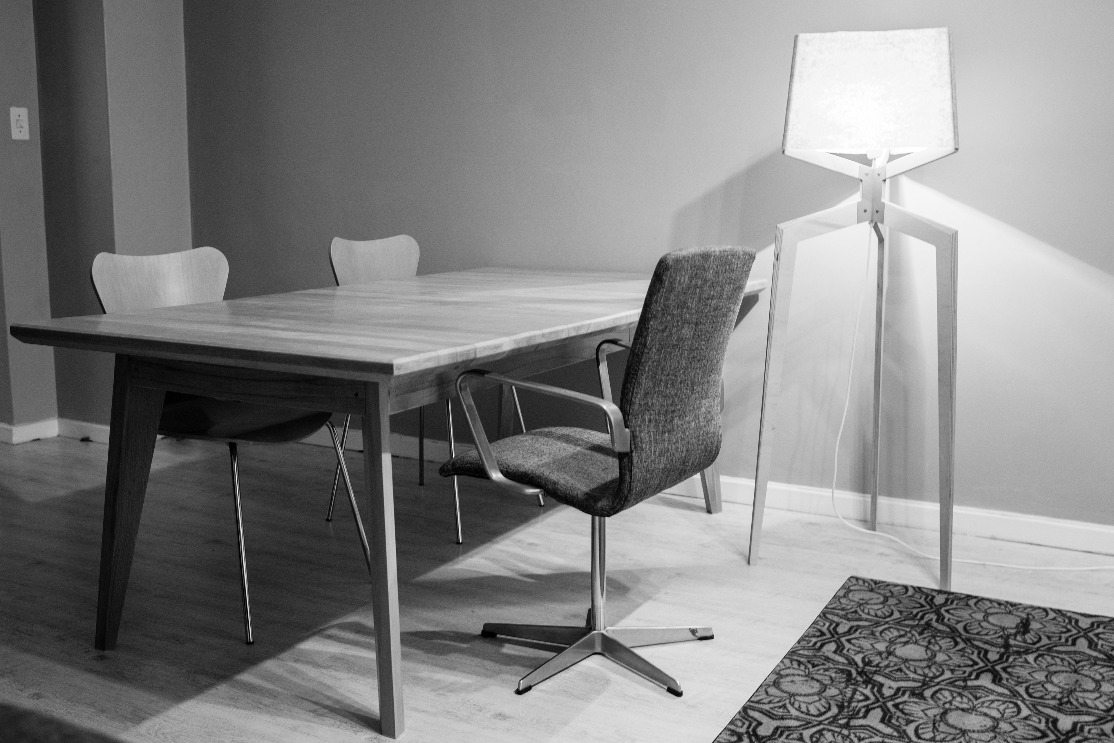 table solid beechwood, together with the Triluma lamp