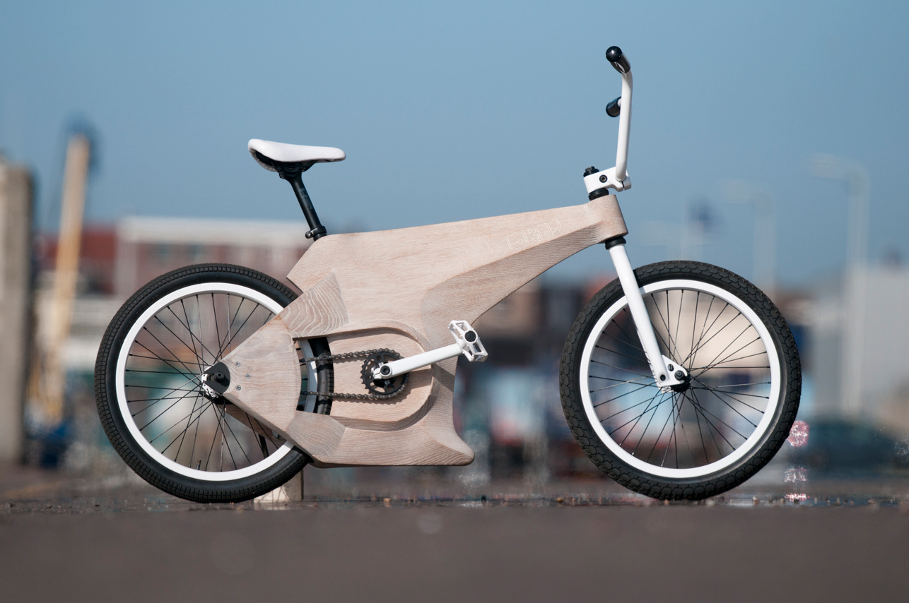 CNC ed solid oak wood 20' bicycle, without metal frame inside.